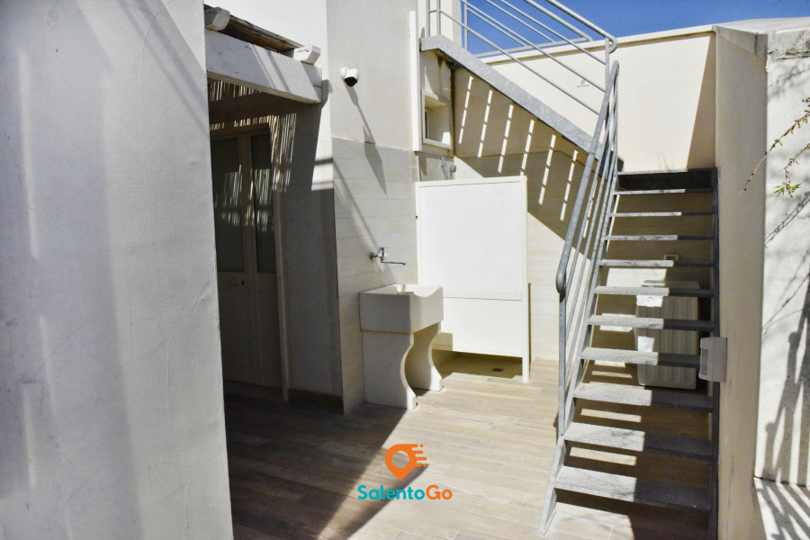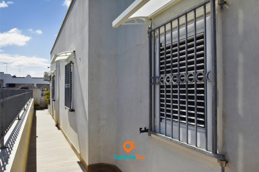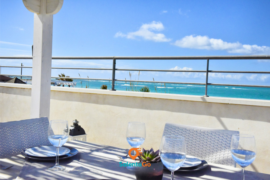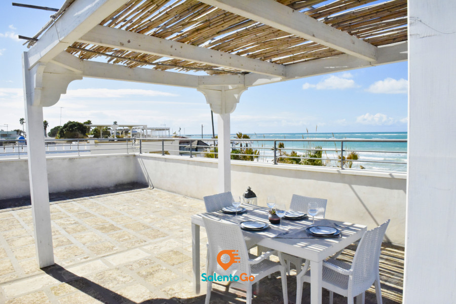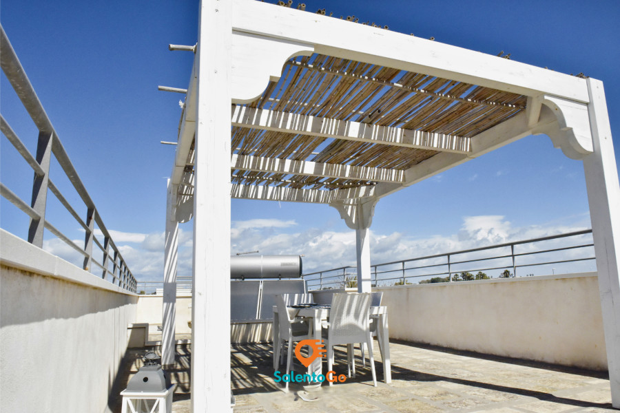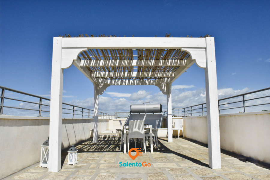 Il vero punto di forza di questa struttura è l'ampio terrazzo solarium vista mare. Uno spazio esclusivo e panoramico, completamente arredato con mobili relax e zona pranzo. Grazie al barbecue presente sul terrazzo, potrai organizzare cene indimenticabili ammirando la costa salentina.